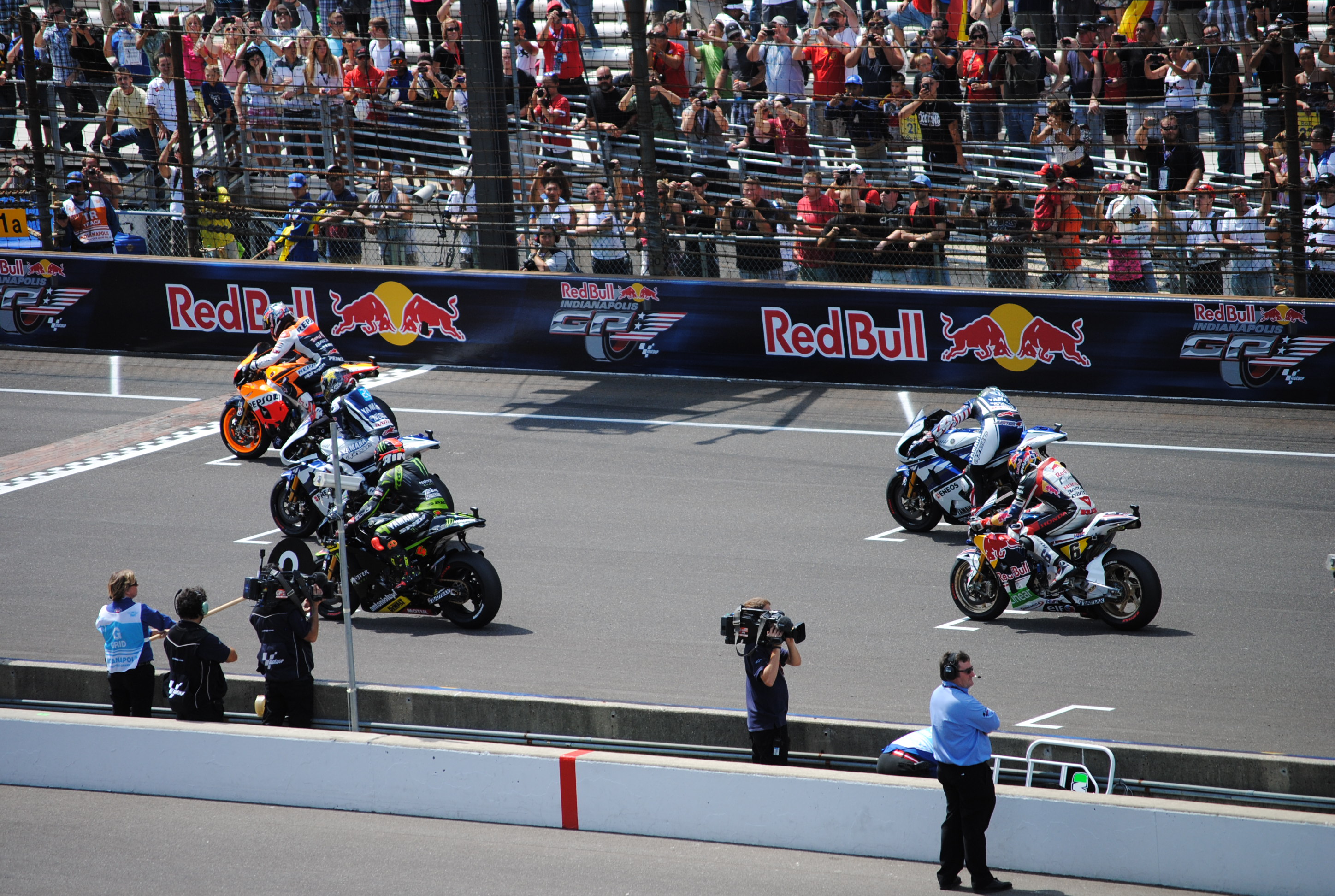 For the fifth time this season, undoubtedly some kind of modern record, Andrea Dovizioso would drive his satellite Yamaha to claim that spot, holding off the wounded, snarling Stoner.  Posterity would also observe that Pedrosa turned the single fastest lap ever here AND became the first two-time winner at Indianapolis, while Stoner would retire having won only three of his last four races on American soil.  That Stoner would attempt the fourth on one leg would not go unnoticed.
