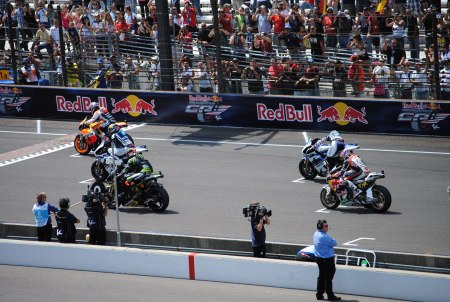 Indianapolis has proven itself a formidable place to race motorcycles, with the long fast straight and the slow, twisty infield section, serving different asphalt on different sections of the track to keep it from becoming boring.  The IMS track is slick and abrasive, reminding one of European bathroom tissue.  Bridgestone brings in a bunch of tire choices, asymmetric rears, etc., and everyone has either not enough grip or too much.  No blaming it on the weather, which was perfect this year.