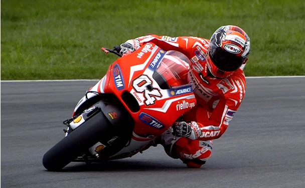 Rossi looked ready to repeat in 2009 until an ill-advised crash on Lap 9 handed the win to Lorenzo. In August of 2009, Rossi had the championship title in the bag, and could have easily coasted to a podium finish. Instead, he went balls to the wall, his usual style, and left the door ajar for Lorenzo, the eventual 2009 runner-up. Joining Lorenzo on the podium in 2009 were Alex de Angelis on a satellite Honda and homeboy Hayden on the Ducati Desmosedici. For both de Angelis and Hayden, Indianapolis marked their only podium appearance of 2009.